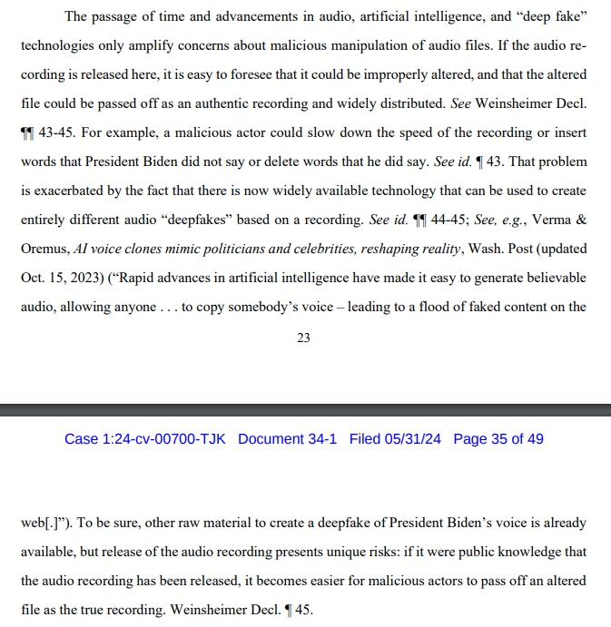 DOJ officials underscored the privacy implications at stake, arguing that the public release of the audio would compromise substantial privacy interests. The DOJ’s adamant stance against the dissemination of the audio tapes underscores the ongoing debate surrounding the intersection of technology, authenticity, and privacy in today’s digital age.
